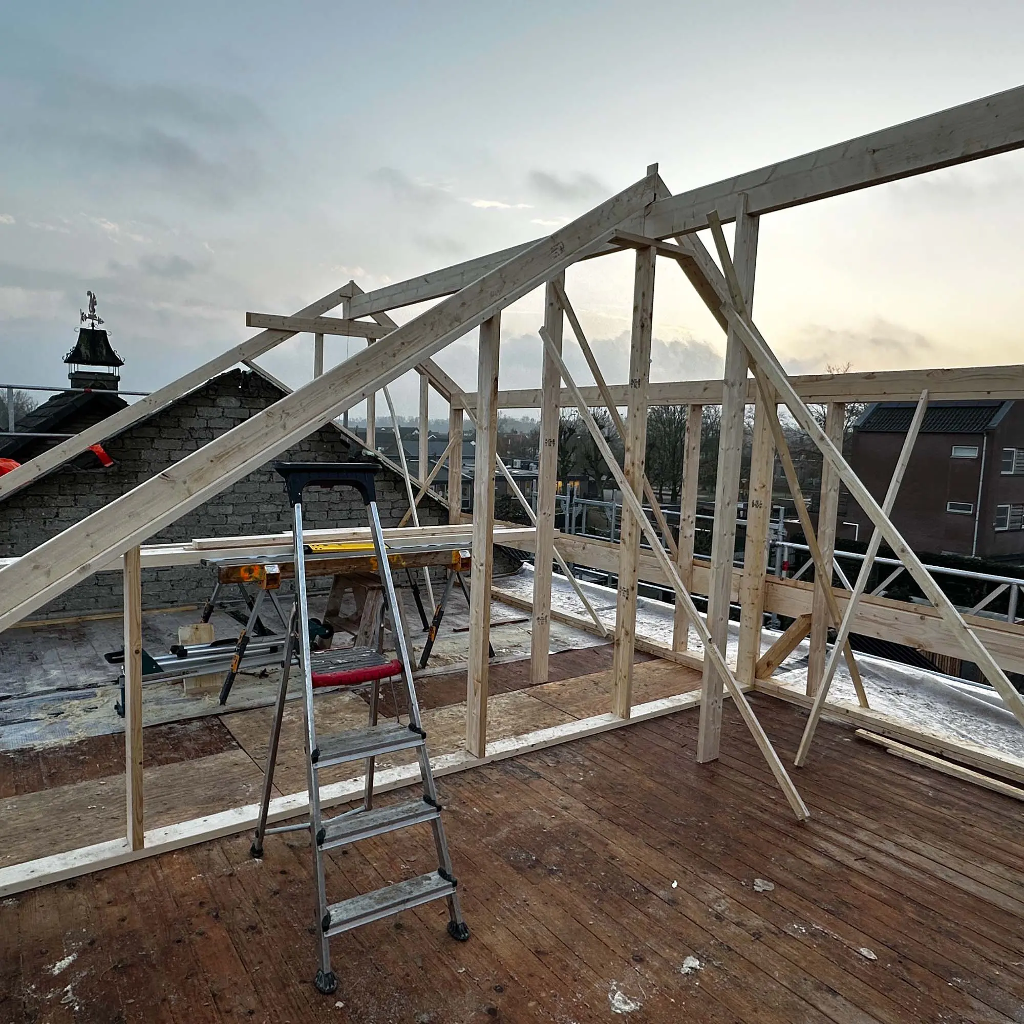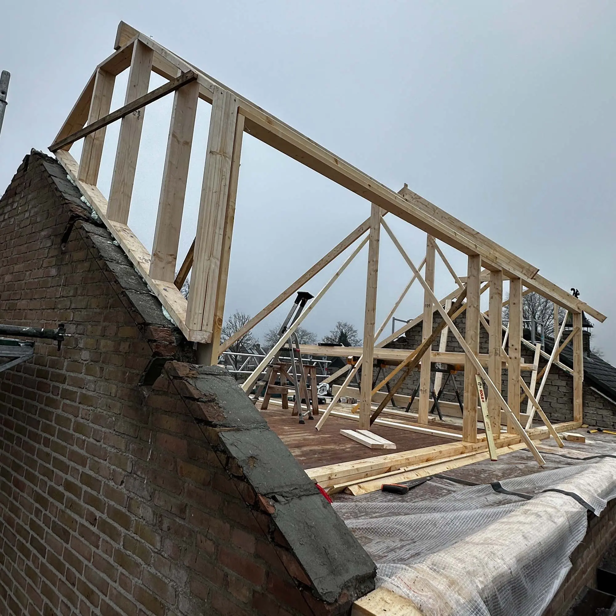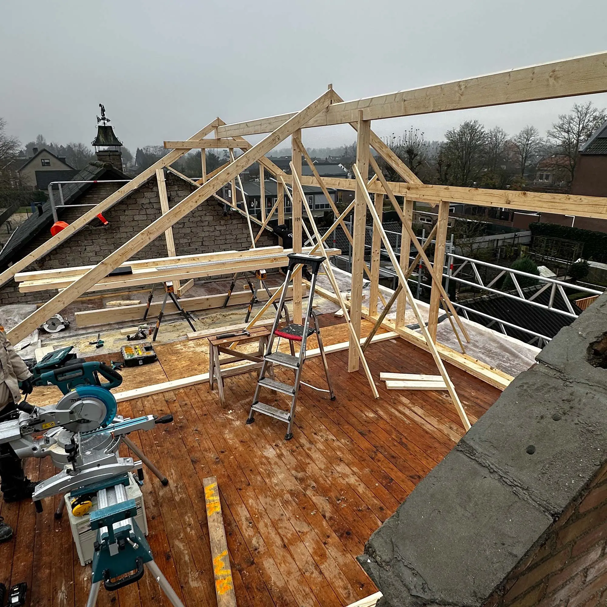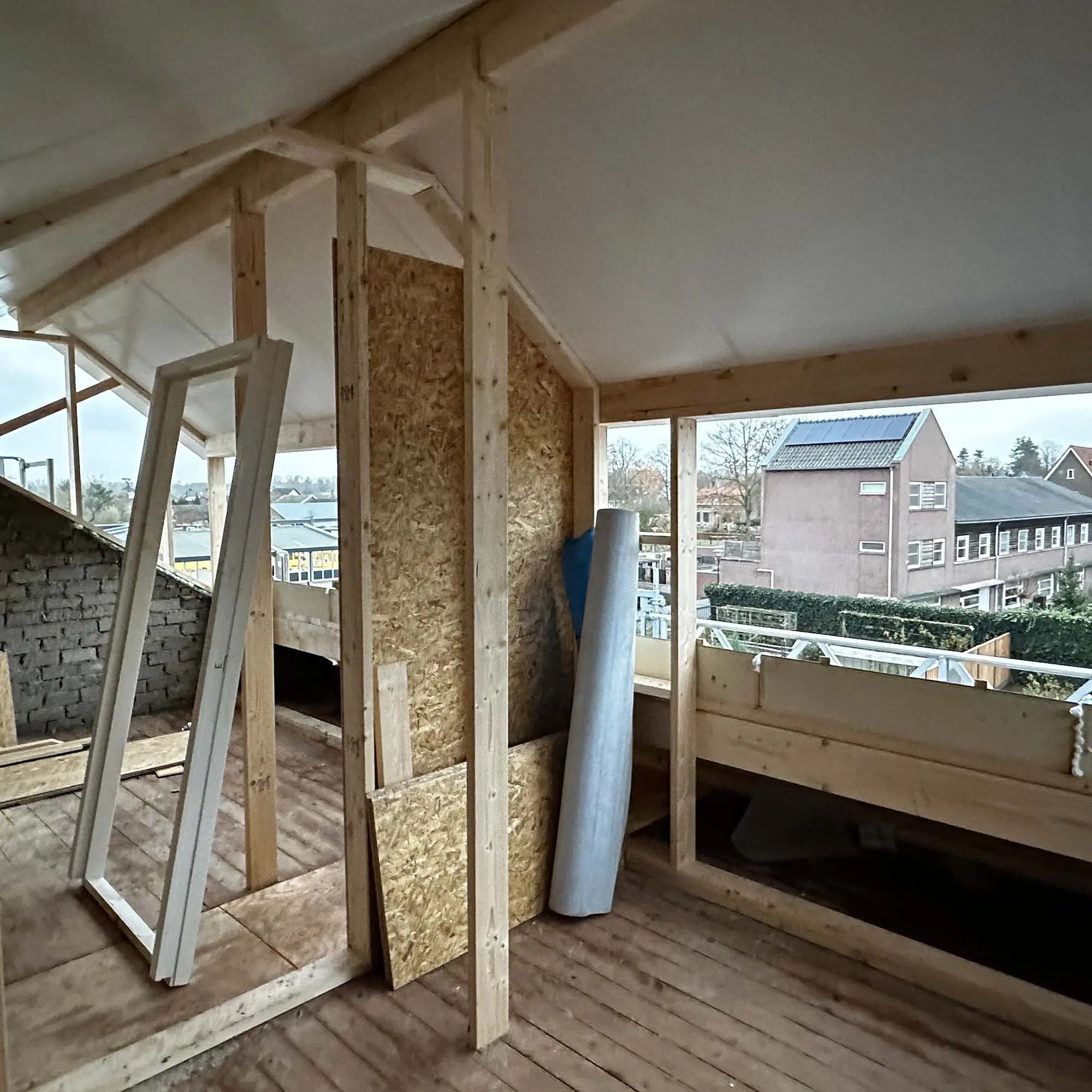 Extra vierkante meters creëren kan op verschillende manieren. We realiseren geregeld mooie uitbouwen, maar ditmaal gingen we voor de opbouw. De woning had een zolder, maar dit was een vliering voor het opbergen van de kerstballen en dergelijke. Door het dak te verhogen en een raampartij toe te voegen hebben we op de zolder ruimtes gemaakt die nu gebruikt kunnen worden als slaap- logeer en/of werkkamers. (Met een kast voor die kerstballen.)