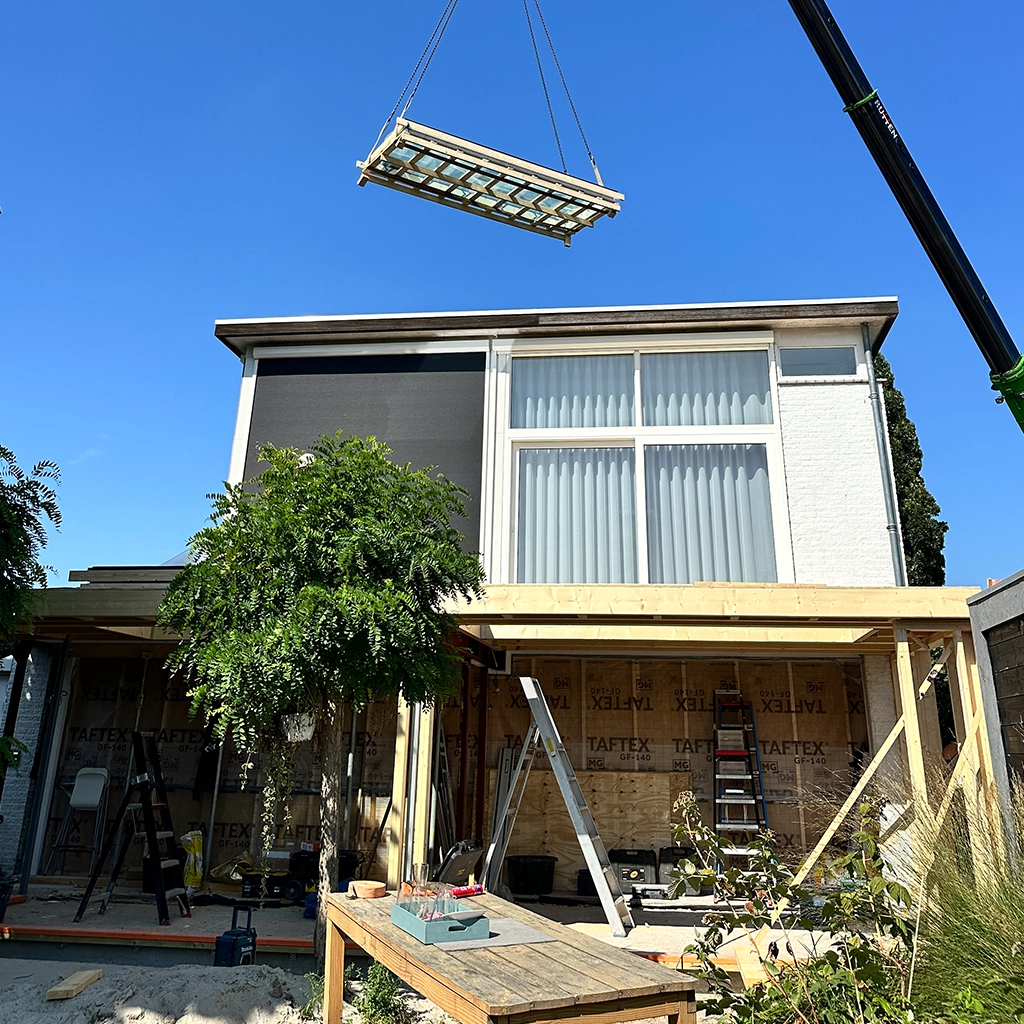 Je hebt uitbouwtjes en je hebt uitbouwén. Deze extra vierkante meters aan de woning aan de Holtgeshoek zijn een echte statement. Om te beginnen is het een uitbouw van formaat, met extra grote puien en twee lichtstraten. Het bloemkozijn voorziet de woning nog meer allure, het op de gevel geplaatste kozijn geeft structuur en van binnen een mooie, extra diepe vensterbank.