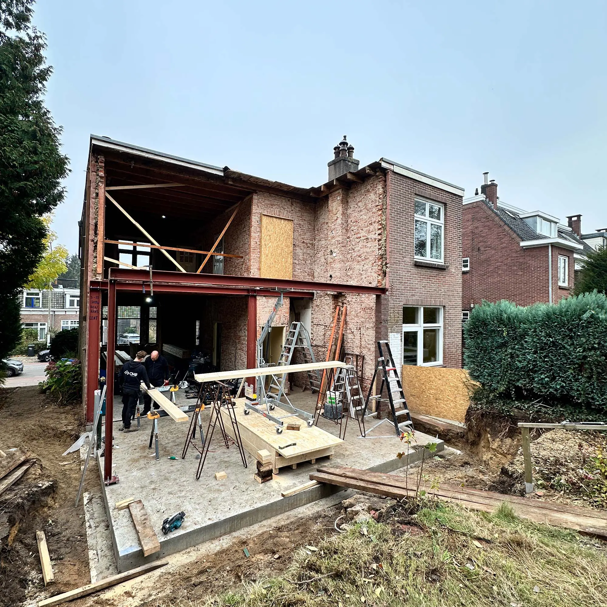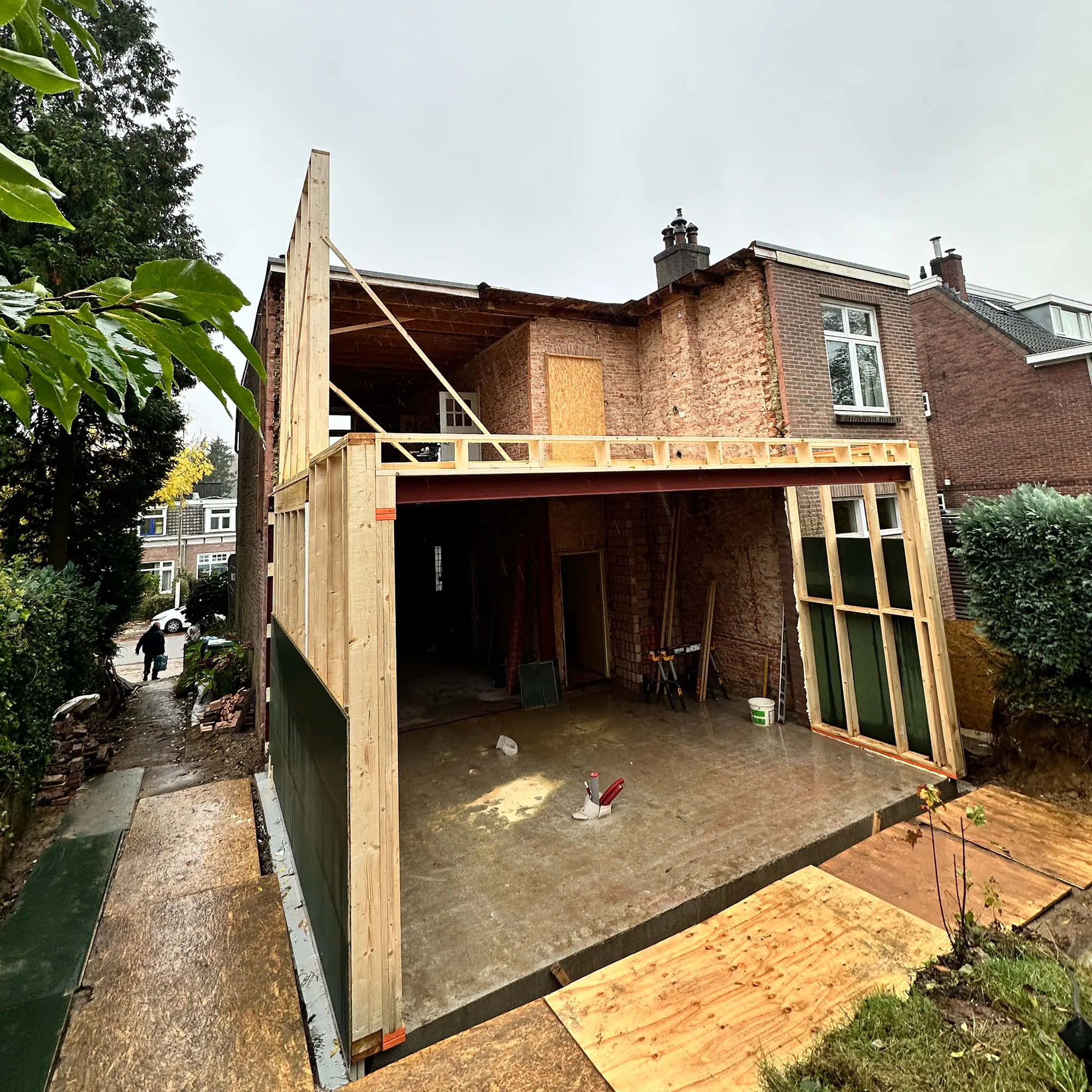 Zoals velen vielen de eigenaren van deze woning voor de mooie jaren 30 stijl, kenmerkende voor Nijmegen-Oost. Achter de charmante voorgevel zat echter het nodige achterstallig onderhoud, bovendien was er behoefte aan extra vierkante meters bewegingsruimte. Er was een klein uitbouwtje en deze hebben we vervangen door een nieuw exemplaar over de gehele breedte en over twee verdiepingen.